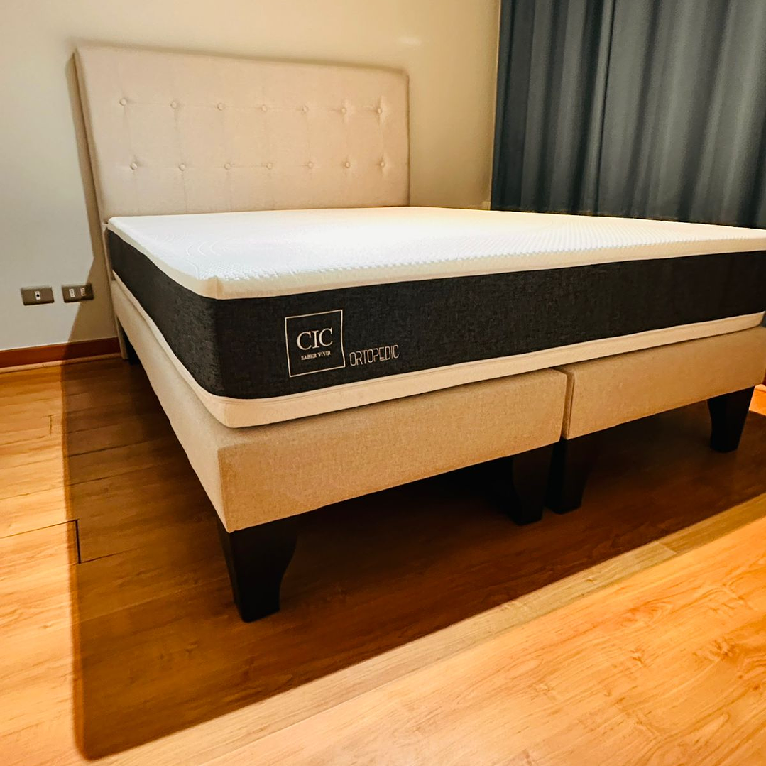 Cama de 2 plazas con colchón cic ORTOPÉDIC incluye base dividida europea, respaldo a piso y colchón cuenta con funda desmontable para su lavado con color de base y respaldo a elección